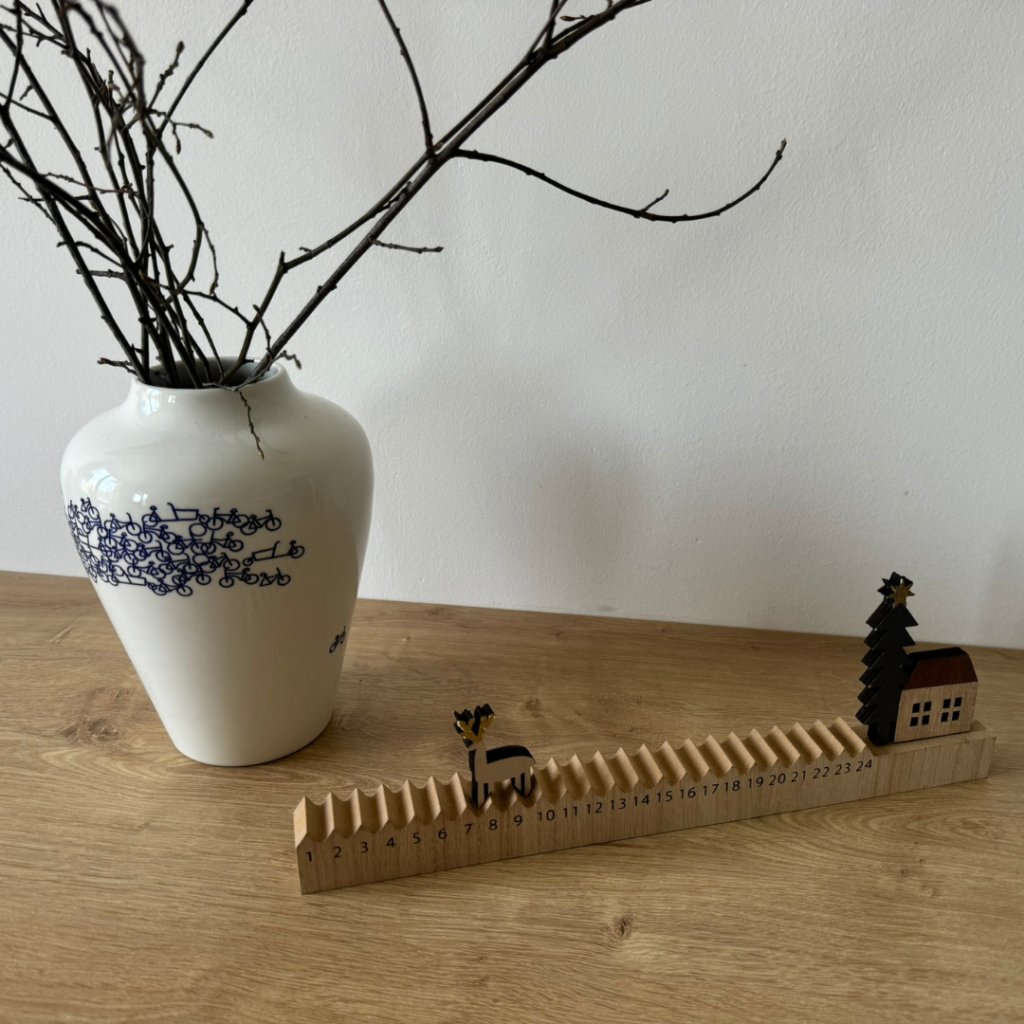Dřevěný adventní kalendář v přírodních barvách perfektně doplní váš sváteční domov a vnese do něj kouzlo očekávání.
