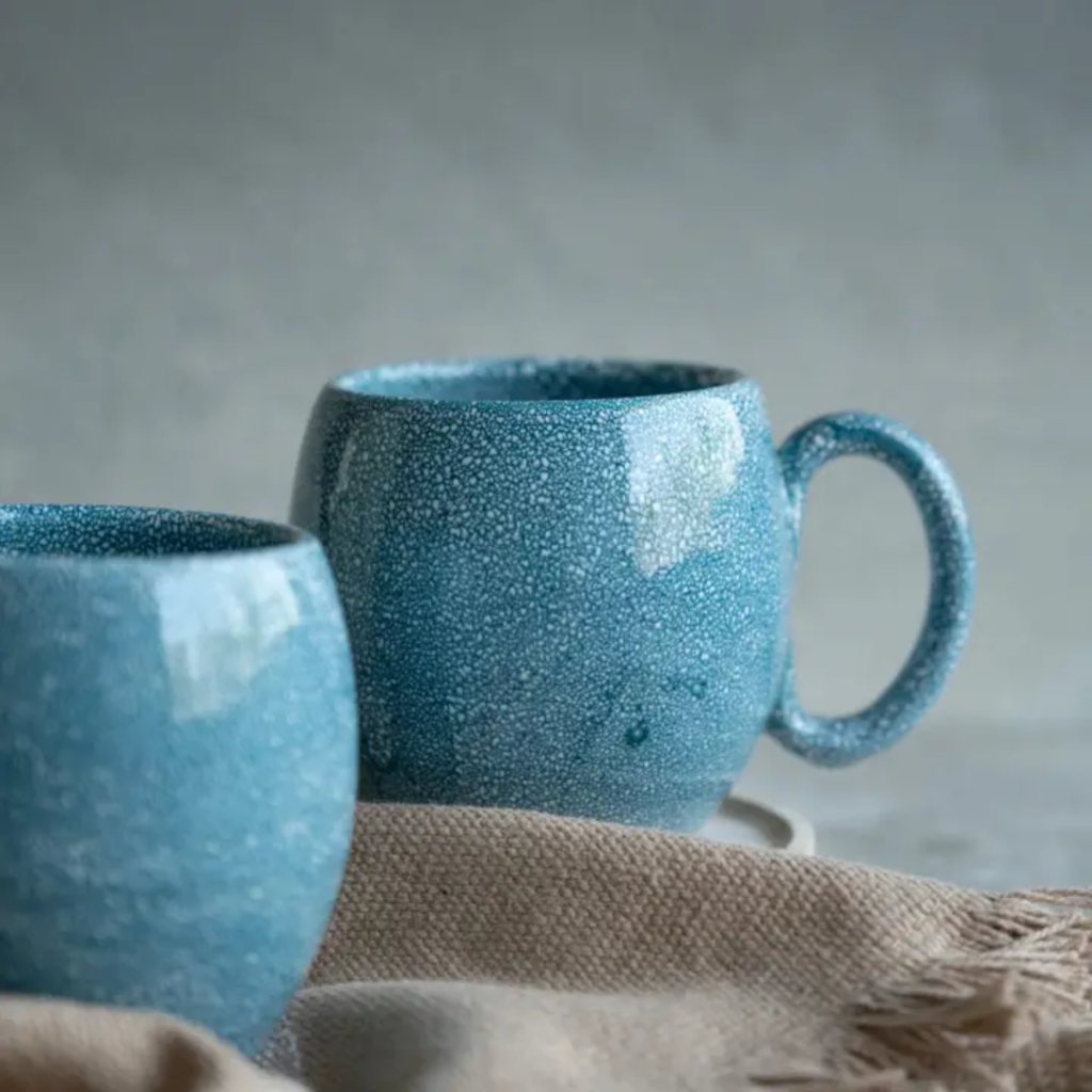 Keramický hrnek v odstínech tyrkysové připomíná mořský příliv. Díky objemu cca 250 ml je ideální na kávu nebo čaj. Vhodný do myčky i mikrovlnné trouby.