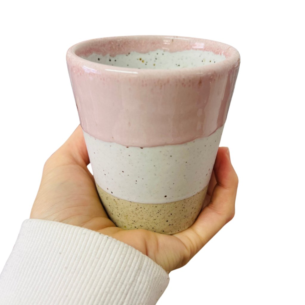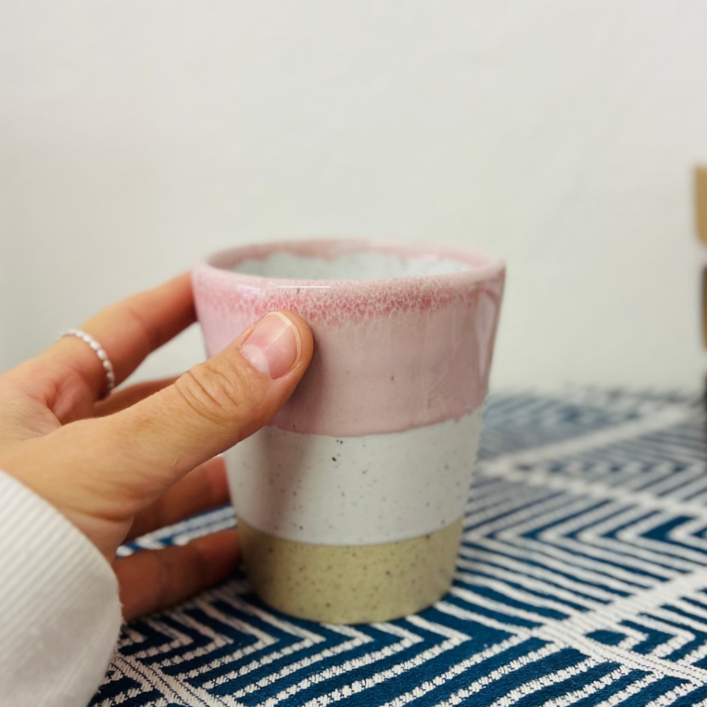 Keramický hrnek o objemu cca 330 ml v pastelových odstínech. Ruční výroba z Portugalska.