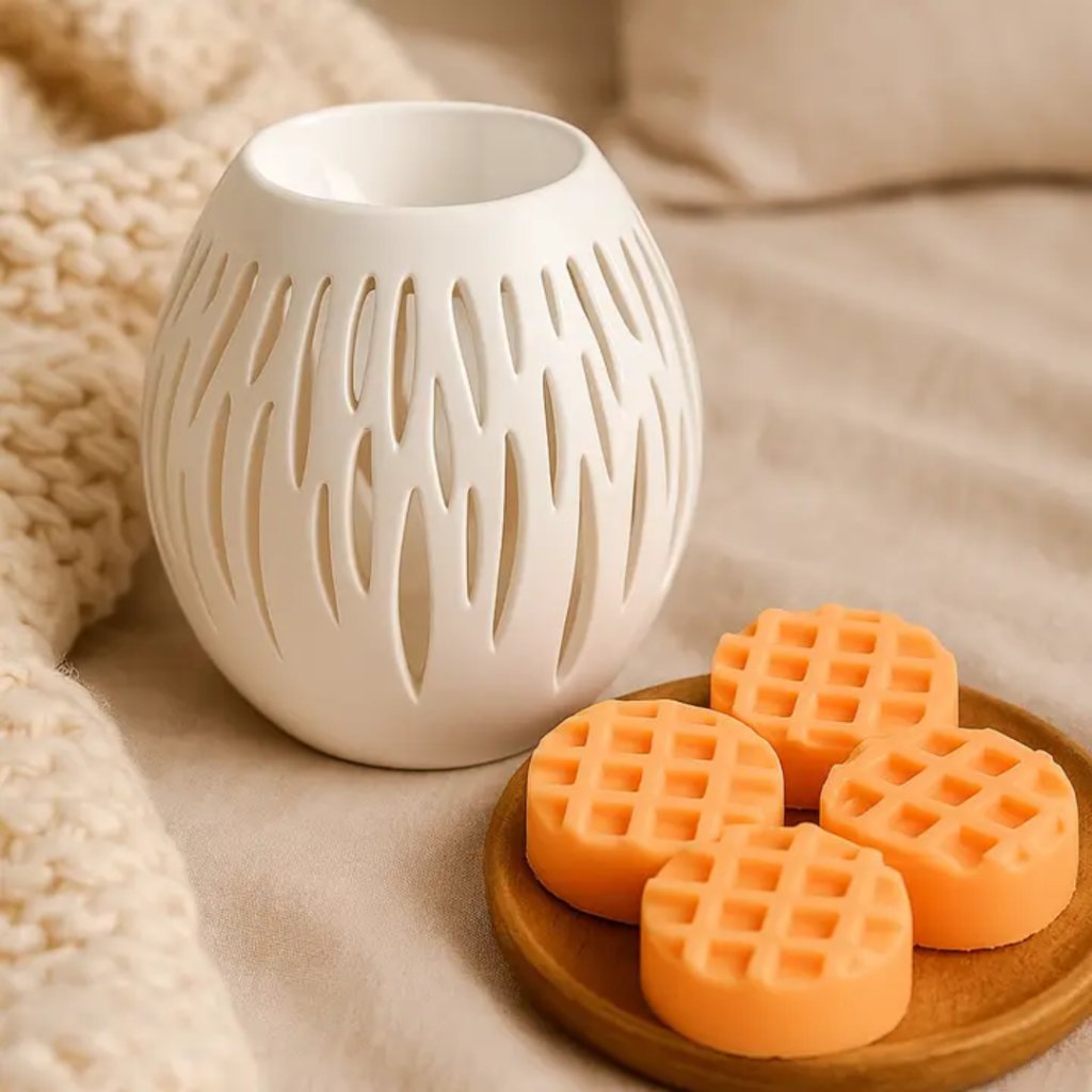 Keramická aromalampa v bílé barvě, do které se skvěle hodí naše ručně vyráběné vosky vytvoří tu pravou pod/zimní atmosféru a provoní váš domov.