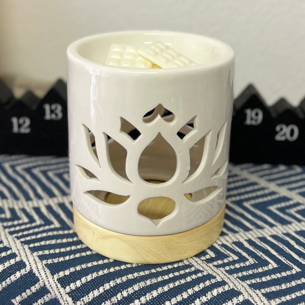 Keramická aromalampa v bílé barvě, do které se skvěle hodí naše ručně vyráběné vosky vytvoří tu pravou pod/zimní atmosféru a provoní váš domov.