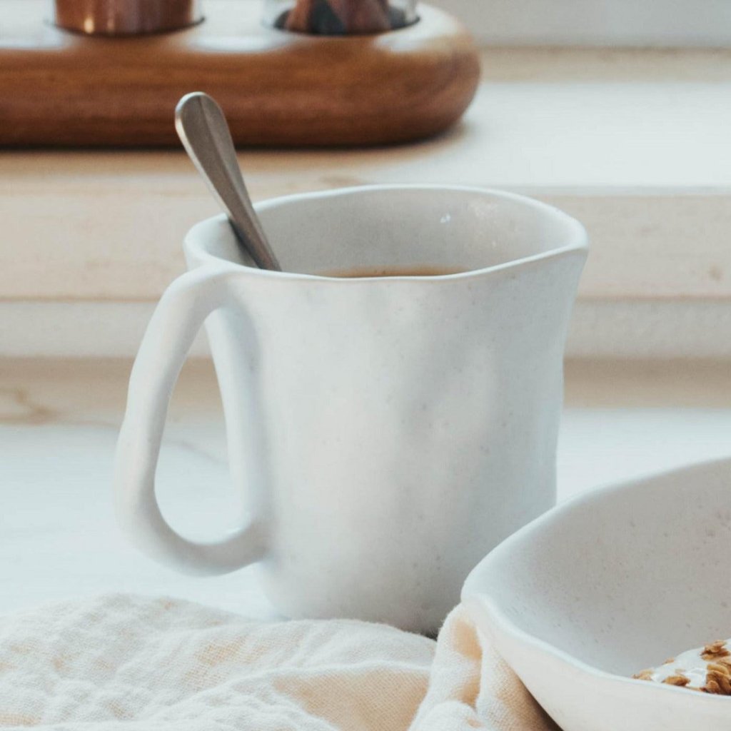 Ručně modelovaný hrnek o objemu 300ml v bílé barvě.