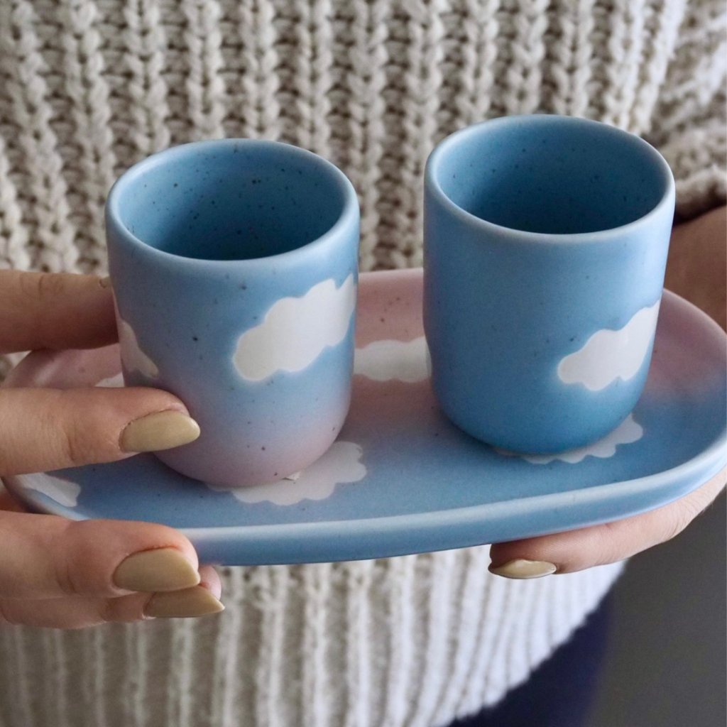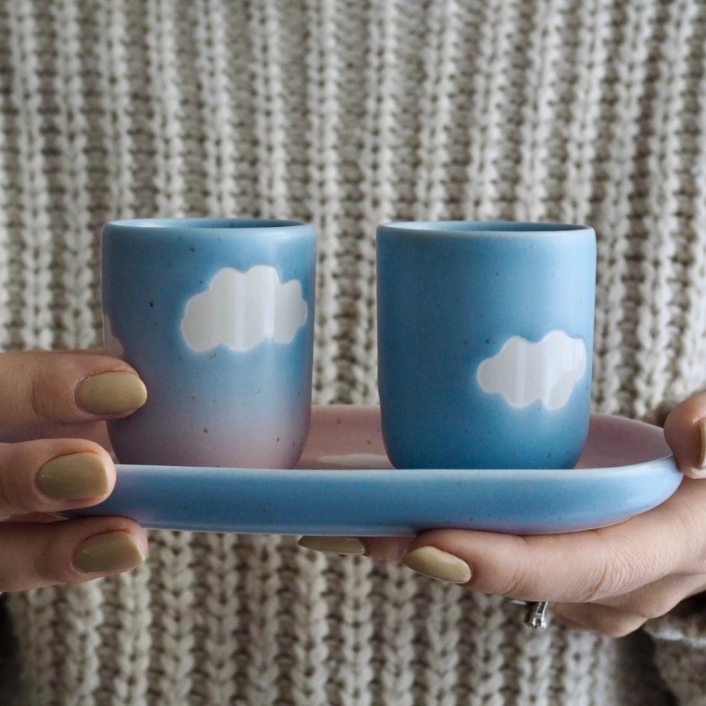 Díky objemu 70 ml je to perfektní hrnek na vaše milované espresso. Povzneste se nad všední dny a vychutnejte si kávu tak trochu s nadhledem, z výšky. Keramický hrnek pochází z ruční dílny mladé portugalské značky Egg Back Home, proto se jednotlivé kousky od sebe mohou mírně lišit.