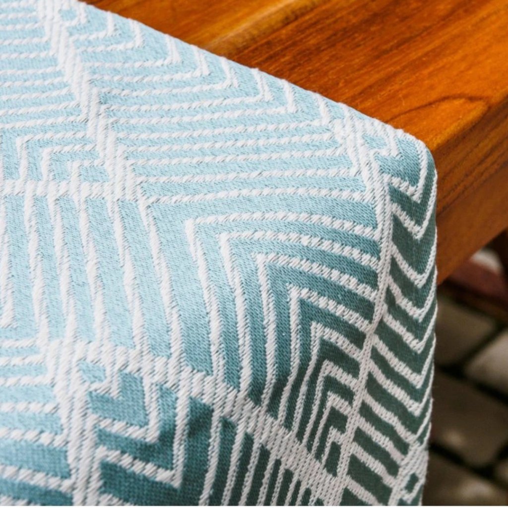 Běhoun můžete používat celoročně – skvěle se hodí jak pro běžné stolování, tak pro sváteční příležitosti. Pro kontrastní efekt ho zkombinujte s naším lněným ubrusem Tejbloo, který krásně podtrhne jeho tyrkysový odstín.