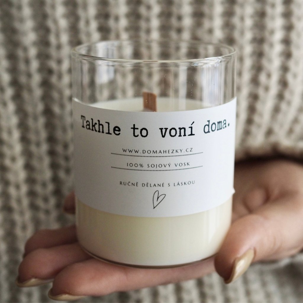 Ručně vyráběná svíčka ze 100% sójového vosku s dřevěným knotem v nahatém provedení - bez etikety.